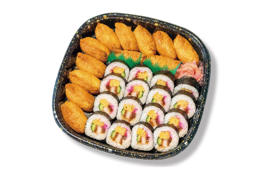 いなり寿司と太巻き寿司のセット。見た目も鮮やかでボリューム満点。大人数の食事におすすめ!