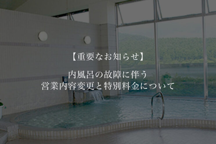 現在、内風呂(大浴槽)がポンプ故障のためご利用いただけない状況となっております。