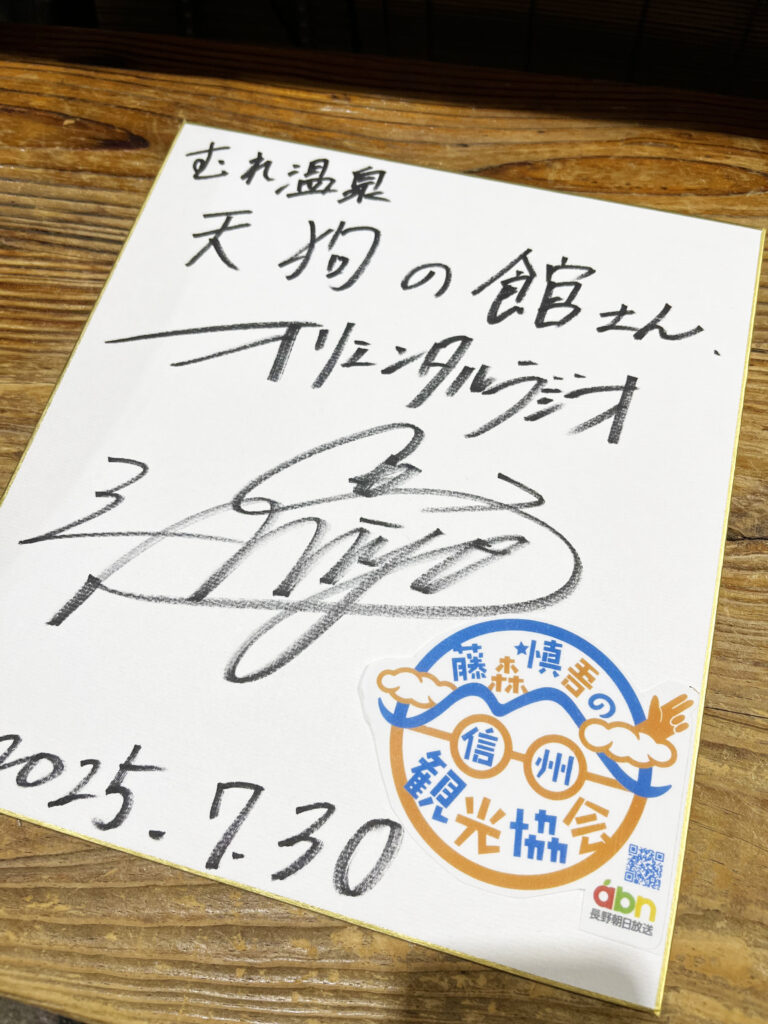 このたび、abn長野朝日放送で放送中の人気番組『藤森慎吾の信州観光協会』にて、むれ温泉 天狗の館が紹介されることになりました。